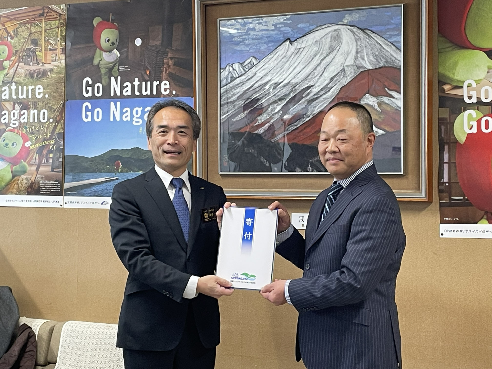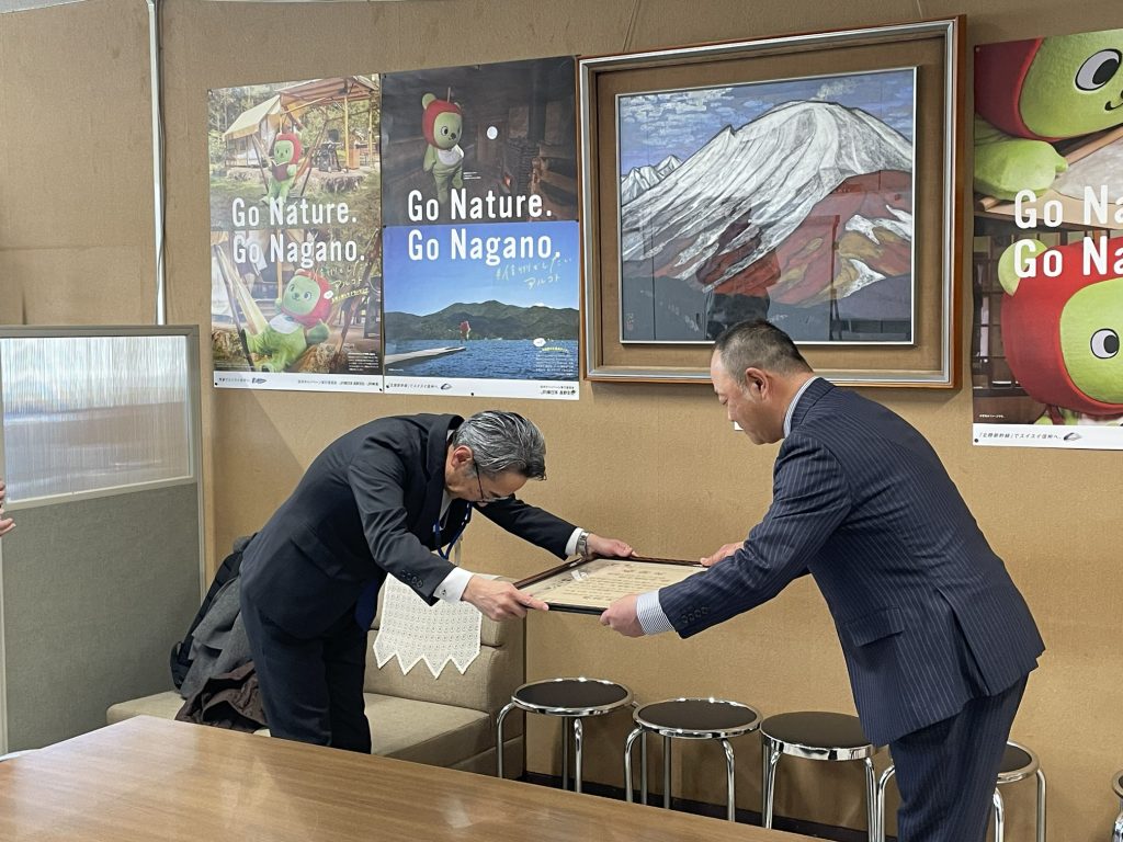 長野県に寄付を行いました。 2026年3月19日お知らせadmin_norikura-hc 令和8年3月12日、乗鞍ヒルクライム大会実行委員会は2025年・実施しました40周年記念事業による収益40万円を長野県に寄付いたしました。 奥灘充・実行委員長が栗林一彦・長野県建設部長に贈呈し、大会コースである長野県道乗鞍岳線の維持管理に役立てていただきたい旨を伝えました。これに対し、唐澤則夫・長野県松本建設事務所長より感謝状を賜りました。 今年、大会は41回目を数えます。これまで大会にご参加の皆様、大会を支えてきてくださった皆様に心より感謝申し上げます。 クリックして Twitter で共有 (新しいウィンドウで開きます)Facebook で共有するにはクリックしてください (新しいウィンドウで開きます) 関連